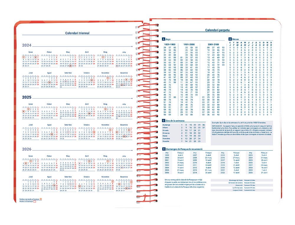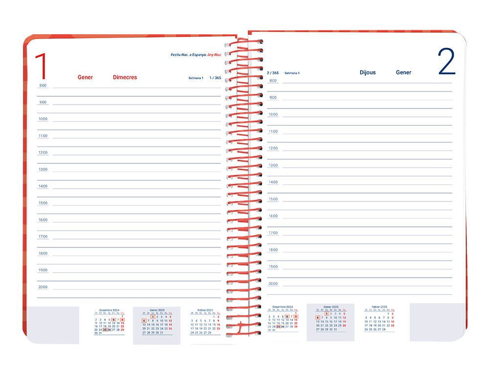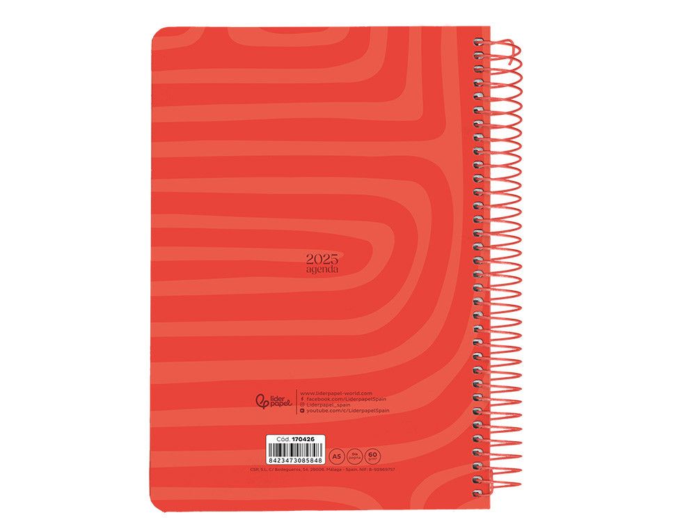 Agenda espiral liderpapel syros A5 2025 día página color rojo papel 60 gr catalan