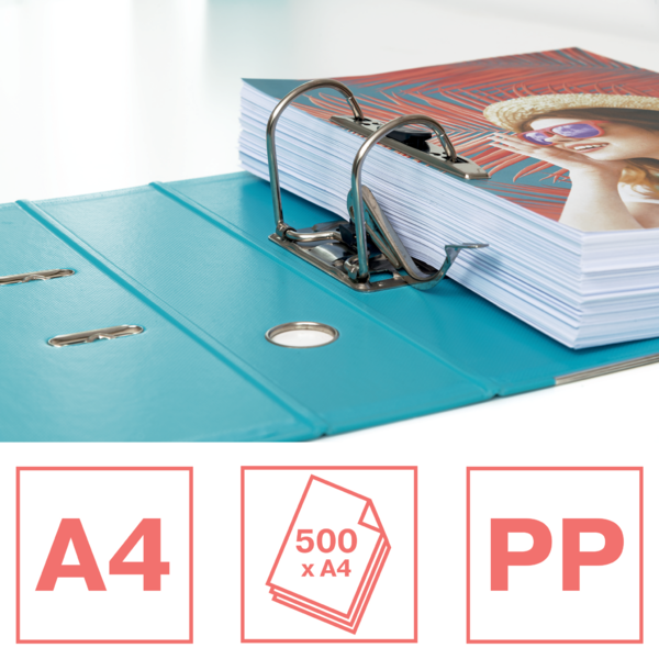 - Capacidad: Almacena hasta 500 hojas A4 con un lomo de 75 mm.