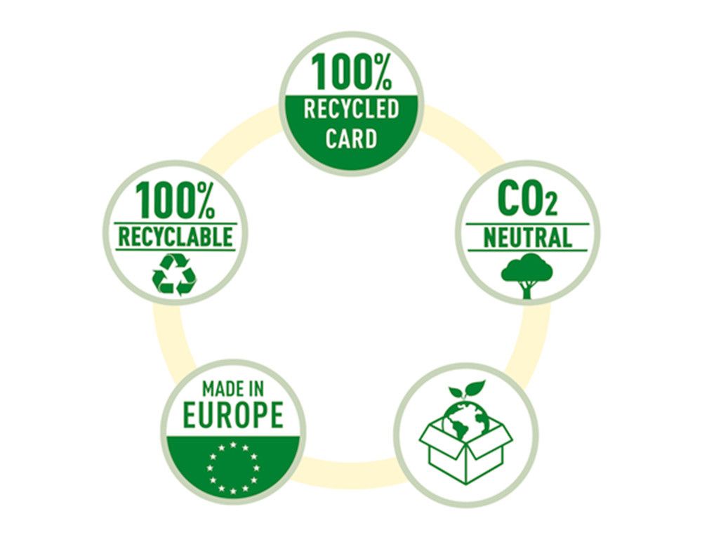 Archivador de palanca ecológico con mecanismo No.1, A4, 75 mm. Fabricado en cartón 100% reciclado, certificado FSC y Blue Angel, ideal para cuidar el medio ambiente. Su diseńo moderno y vibrante le da un toque fresco a tu espacio de trabajo. | Referencia Deskidea: 163197