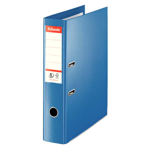 El archivador de palanca Esselte Nº1 es duradero y de gran calidad, con un diseño azul vivo. Su mecanismo patentado de 75 mm garantiza un cierre preciso y fiabilidad en cada uso. ¡Ideal para mantener tus documentos organizados y seguros! | Referencia Deskidea: ACC48085
