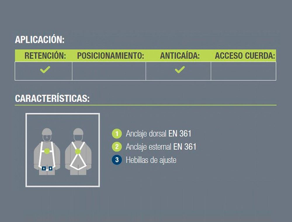 Arnes anticaidas faru dorsal y esternal basico con enganche cincha 45 mm