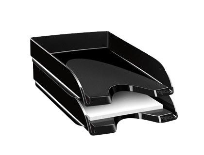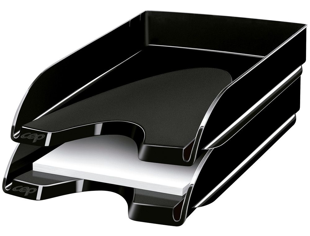Organiza tu espacio de trabajo con la bandeja sobremesa Cep de plástico negro. Su diseńo apilable y abertura frontal facilita el acceso a documentos de hasta 24 x 32 cm, creando un ambiente funcional y elegante. Ideal para mantener todo a la mano y en orden. | Referencia Deskidea: 57166