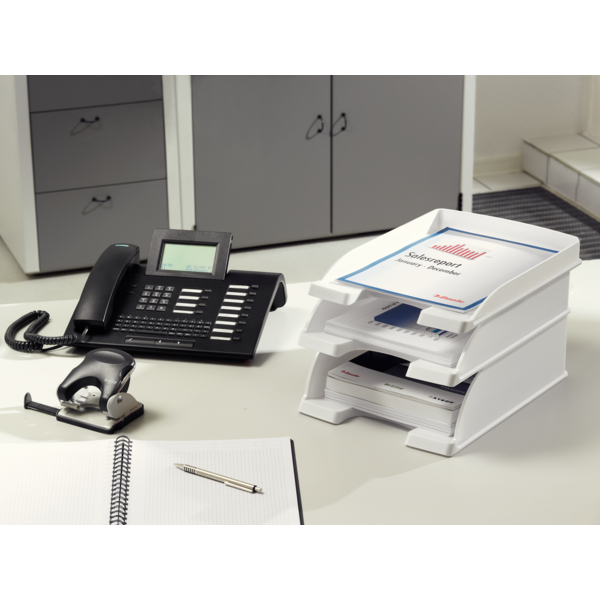 La bandeja Leitz Plus JUMBO es la solución perfecta para el almacenamiento de documentos. Su diseño robusto y apilable asegura una organización eficiente, ideal para documentos voluminosos. Combina a la perfección con otras bandejas de la serie Plus. | Referencia Deskidea: ACC52330035