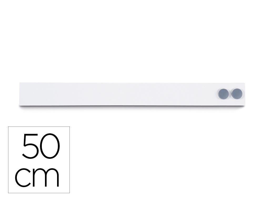 Barra métalica para fijar información con imanes. Práctico: se puede escribir con rotulador de pizarra blanca y borrar en seco. Montaje sencillo sintaladrar: equipada con almohadillas de espuma autoadhesivas para compensa r los desniveles de la pared, no se puede quitar sin dejar residuos. Resistente a los arańazos: chapa de acero plastificada, grosor 0,41 mm. Discreta y duradera: para fijar información en la zona visible, como dibujos, recordatorios, planos, fotos o carteles. Práctica: pueden fijarse individualmente o unir varias entre sí. Incluye imanes en gris, diametro 24 x 8 mm, fuerza adhesiva: 0,6 kg. Apta para la oficina, el taller, el pasillo, la cocina o la habitación de los nińos. Adecuada para instalar en papel pintadorugoso o de virutas de madera con una estructura de grano grueso y sustra tos pintados. El sustrato debe estar limpio y libre de polvo. Con 4 almohadillas autoadhesivas de espuma, 4x4 cm. | Referencia Deskidea: 171848
