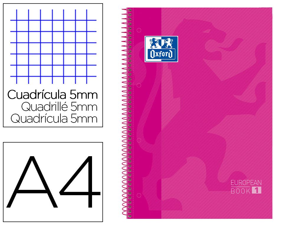 Bloc espiral oxford european book tapa extradura din a4 80 hojas cuadricula 5 mm color rosa