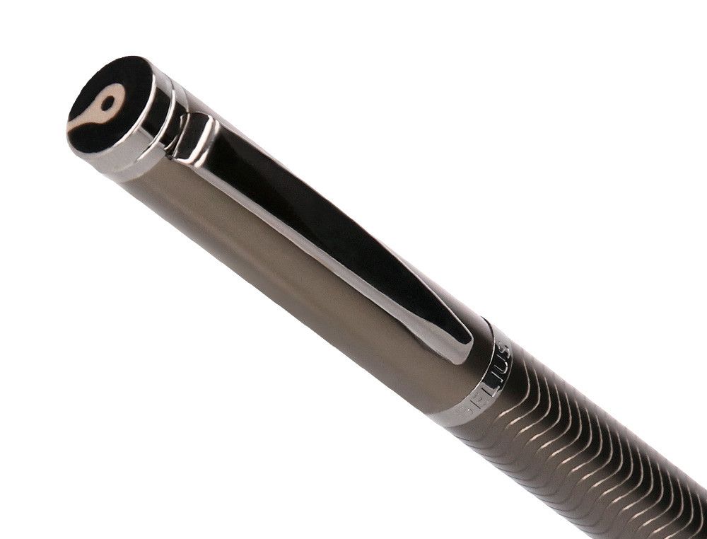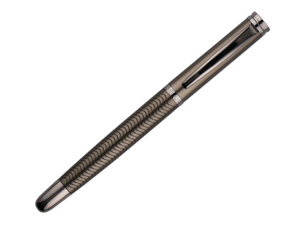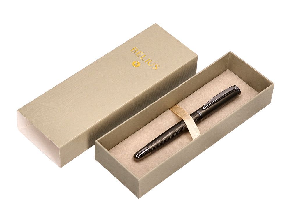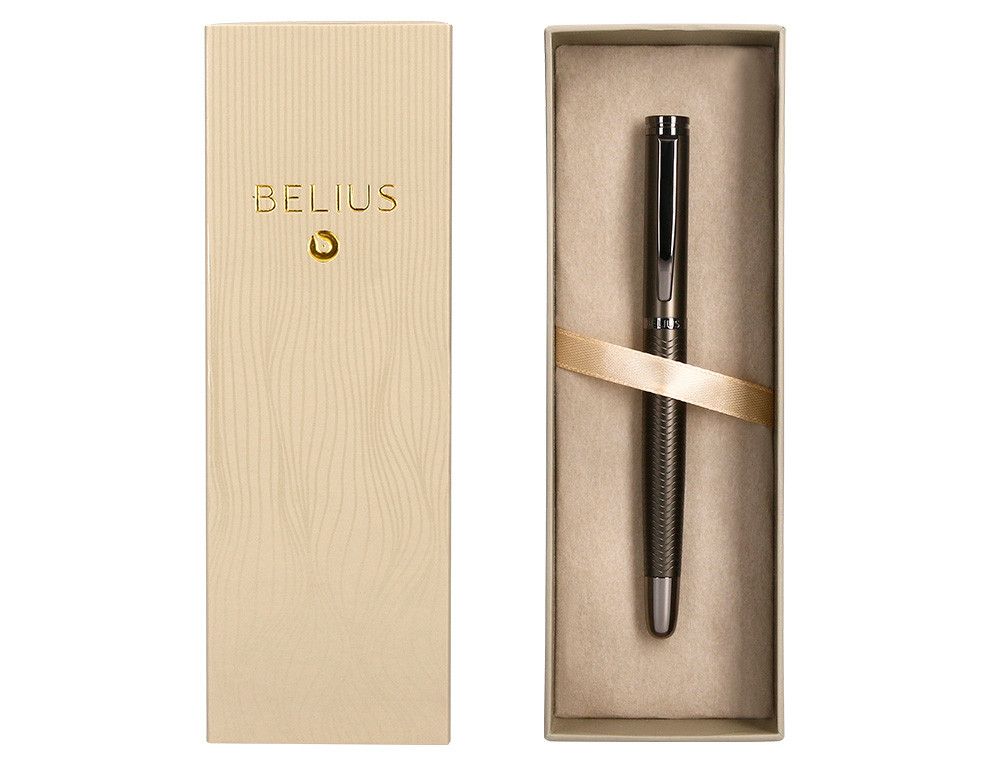Boligrafo belius neptuno aluminio textura wavy color caqui tinta azul caja de diseño