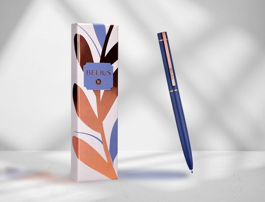 El bolígrafo Belius Rose combina un diseńo elegante en color azul con detalles en oro rosa. Su suave acabado y tinta azul de 1 mm brindan una experiencia de escritura única, perfecta para quienes buscan un toque de lujo y sofisticación en cada palabra. | Referencia Deskidea: 168860