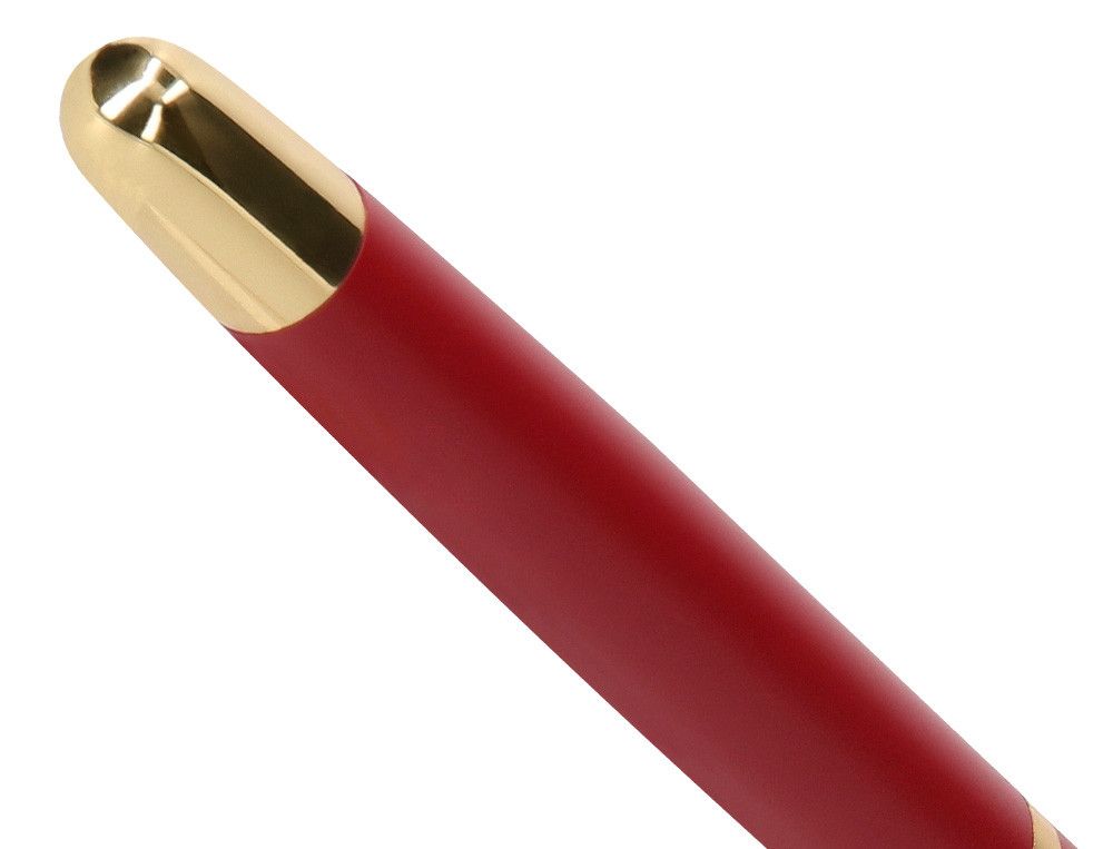 El bolígrafo Soirée combina el glamour del Art Deco con un diseńo elegante en granate y dorado. Perfecto para ocasiones especiales, su tinta azul y su acabado refinado lo convierten en un accesorio indispensable que evoca la elegancia de los ańos 20. | Referencia Deskidea: 168853