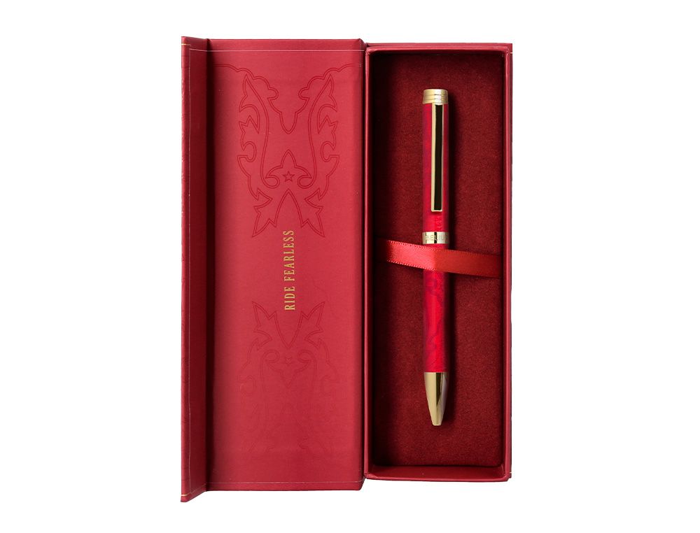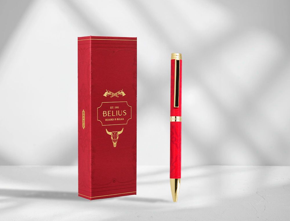 Boligrafo belius wild west aluminio color granate dorado tinta color azul caja de diseńo