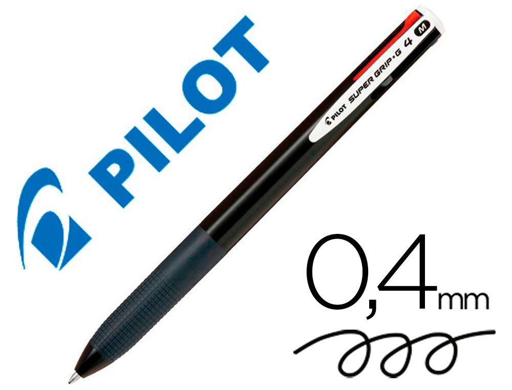 Boligrafo pilot supergrip g 4 colores retractil sujecion de caucho tinta base de aceite cuerpo color negro