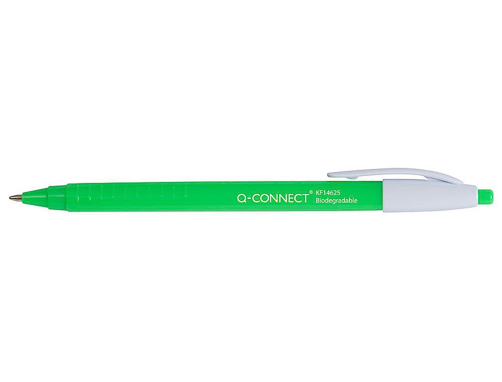Boligrafo q-connect retractil kf14625 biodegradable verde tinta azul