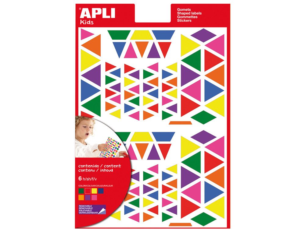 Transforma tus manualidades con las 6 hojas de gomets triangulares de Apli. Con 720 unidades en colores surtidos y un tamańo práctico de 160x217mm, son perfectos para cualquier proyecto creativo. ˇHaz que tus ideas brillen con estos adorables gomets! | Referencia Deskidea: 62828