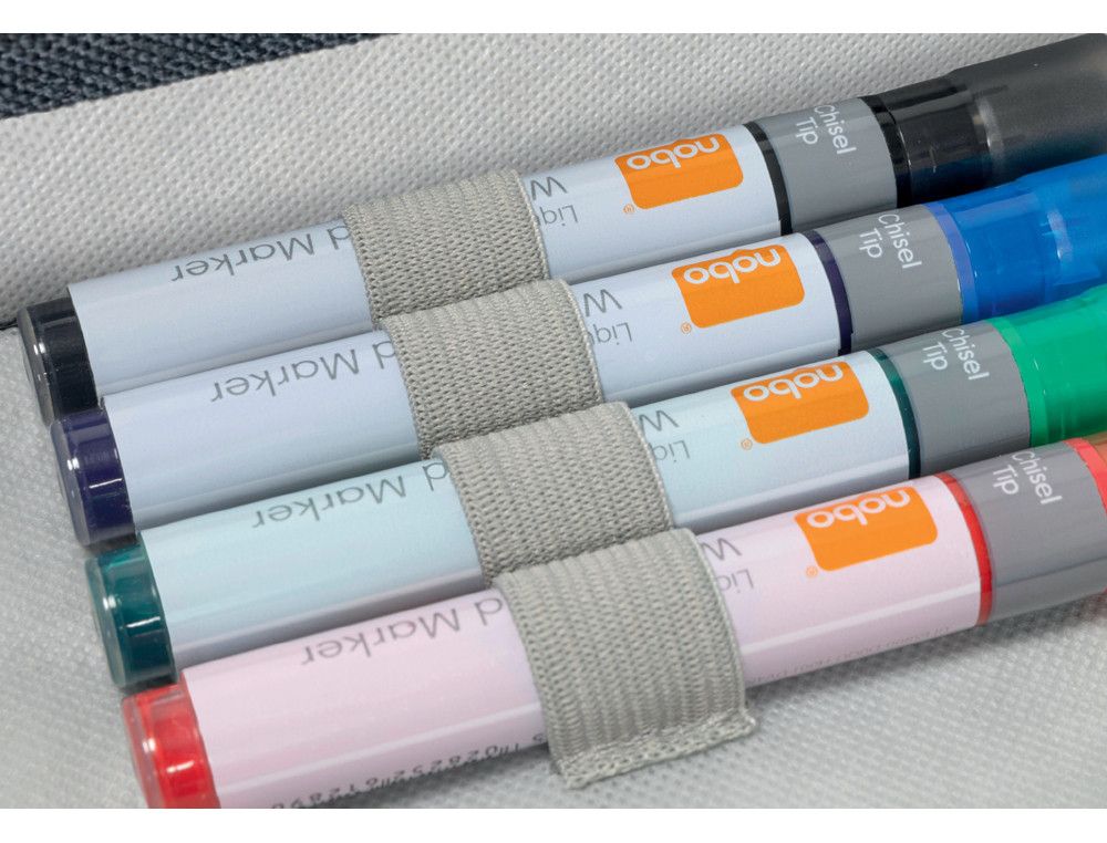 La bolsa kit de accesorios nobo para pizarra blanca es tu compańera ideal para reuniones y sesiones creativas. Ligera y elegante, incluye 10 rotuladores multicolores, imanes surtidos y más, todo en un solo lugar para potenciar tu productividad en cualquier momento y lugar. | Referencia Deskidea: 171991