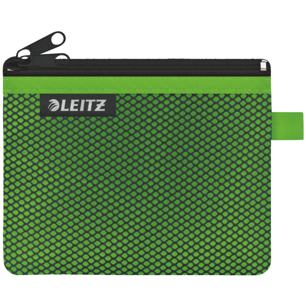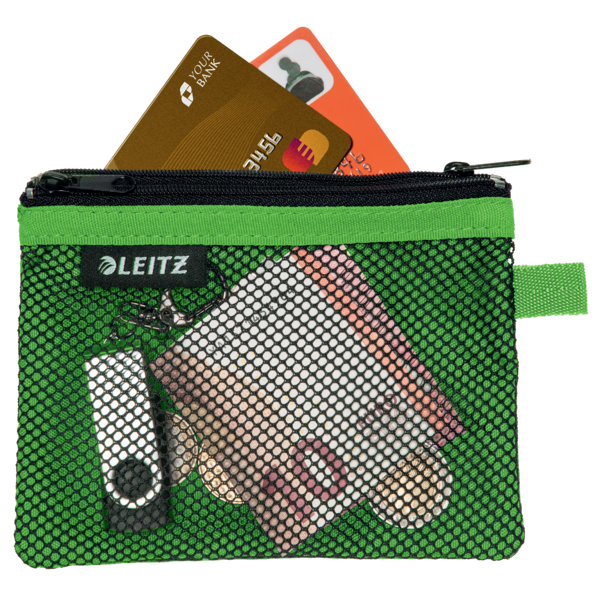 Bolsita práctica de nylon de 14x10.5 cm con dos departamentos: uno opaco y otro de malla. Ideal para organizar tarjetas, cables y objetos pequeños, ¡una solución perfecta para tu día a día! | Referencia Deskidea: ACC40110054