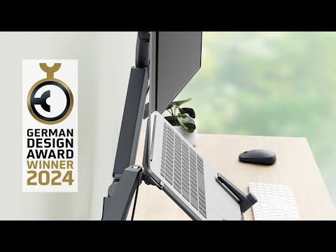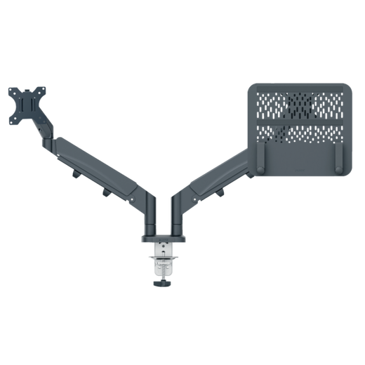 Instala un monitor y un portátil a la altura ideal con el brazo dual Ergo SpaceSaving. Mejora la postura, aumenta la comodidad del cuello y hombros, y optimiza la productividad. Su diseño compacto es perfecto para espacios reducidos, liberando valioso espacio en el escritorio. | Referencia Deskidea: ACC65380089