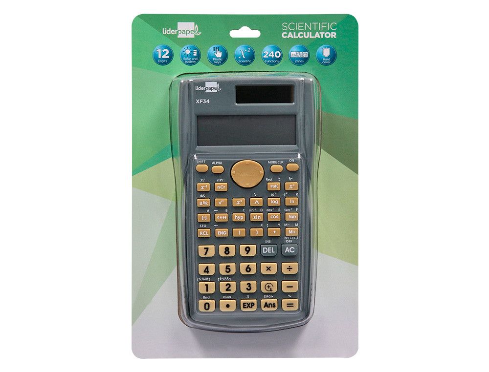 Calculadora liderpapel cientifica xf34 12 digitos 240 funciones con tapa solar y pilas color gris 156x85x20