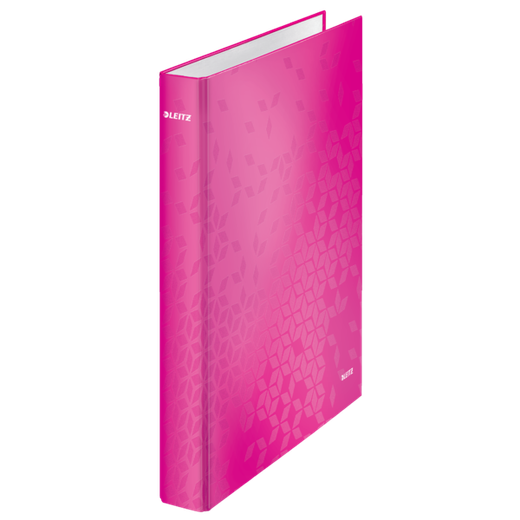 Descubre la Carpeta anillas Leitz WOW en un vibrante fucsia. Ideal para organizar tus documentos de manera elegante, cuenta con un diseño geométrico y un acabado brillante. Su mecanismo de 4 anillas tiene capacidad para 230 hojas A4, combinando estilo y funcionalidad. | Referencia Deskidea: ACC42420123