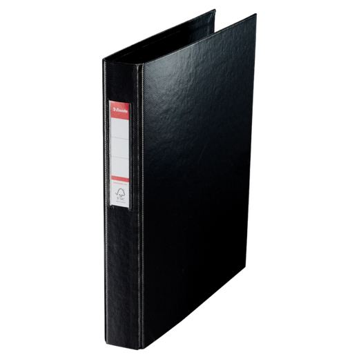 Carpeta anillas plástico forrado. Con interior plástico y tarjetero. 2 anillas Ø 25 mm. DIN A4 negro