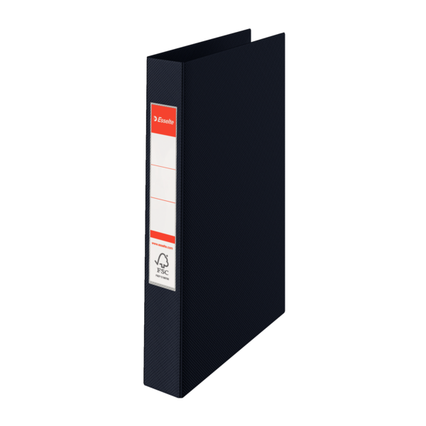 Carpeta anillas plástico forrado. Con interior plástico y tarjetero. 4 anillas Ø 25 mm. DIN A4 negro