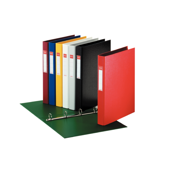 Carpeta anillas de colores vivos y textura atractiva, fabricada en PP. Cuenta con un mecanismo de 4 anillas redondas de 25 mm y capacidad para 190 hojas A4. Ideal para organizar tus documentos con estilo. | Referencia Deskidea: ACC14462