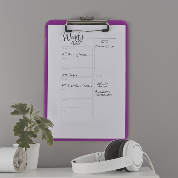 Carpeta con pinza metálica WOW. Fabricada en PS. DIN A4, violeta
