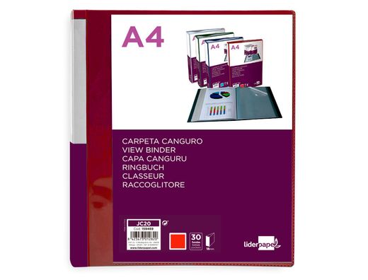 Carpeta liderpapel 30 fundas canguro pp DIN A4 rojo translucido portada y lomo personalizable