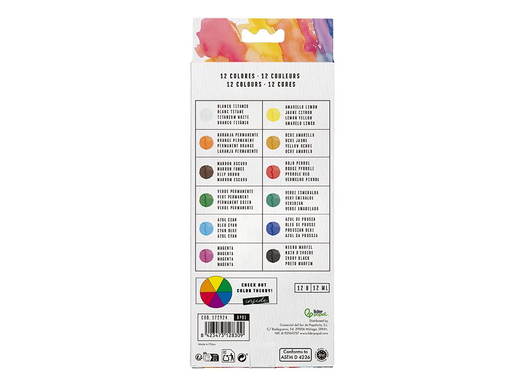 Pintura de acuarela liderpapel caja de 12 tubos de aluminio de 12 ml colores surtidos