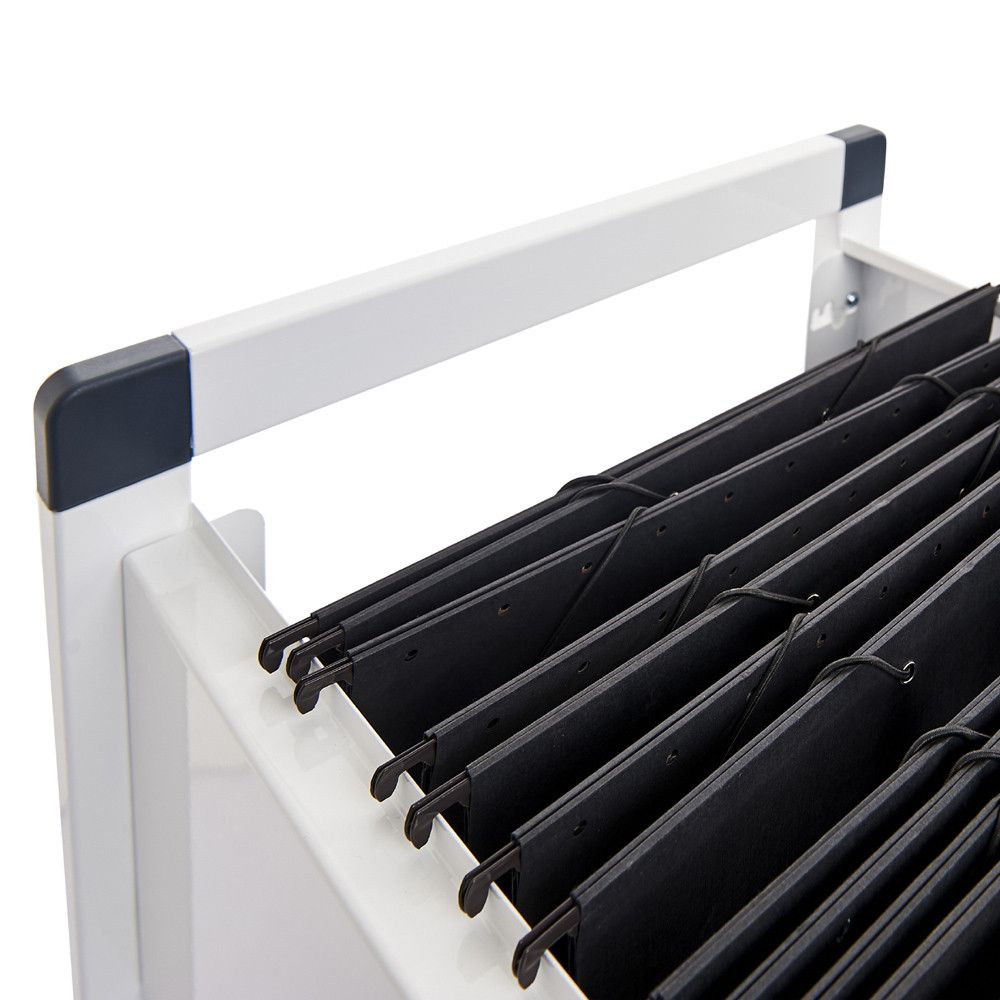 Organiza tu espacio de trabajo con el Carro Carpetas Colgantes Folio Negro, un carro metálico regulable y móvil que facilita el montaje y la movilidad. Ideal para mantener tus documentos ordenados y al alcance de la mano, ¡transforma tu entorno laboral ahora mismo! | Referencia Deskidea: RCD300