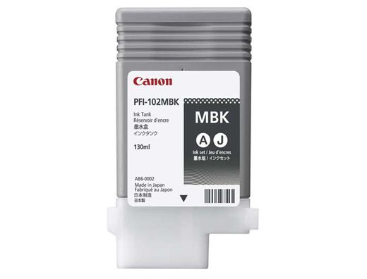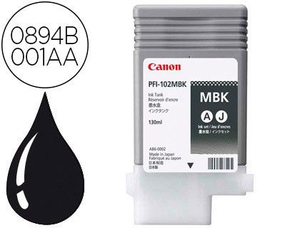El cartucho original negro mate Canon PFI102MBK es ideal para la impresora IPF500. Con una capacidad de 130ml, garantiza resultados de impresión de alta calidad y durabilidad. Perfecto para quienes buscan eficiencia y precisión en sus trabajos. | Referencia Deskidea: 52223