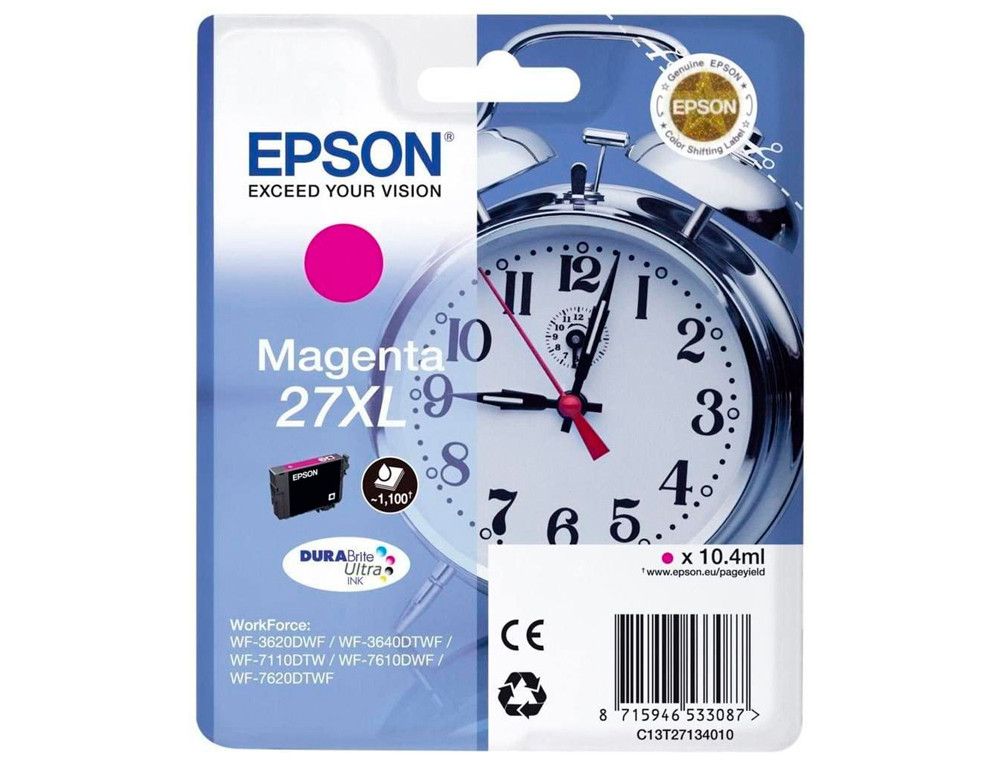 Aprovecha el cartucho de inyección magenta EPSON C13T27134012. Con 10,4ml de tinta y una capacidad de 1100 páginas, es perfecto para tus impresiones de alta calidad. Ideal para modelos WF-3620DWF, 3640DTWF, 7110DTW y 76XXDWF. ˇNo te quedes sin tinta! | Referencia Deskidea: 90897