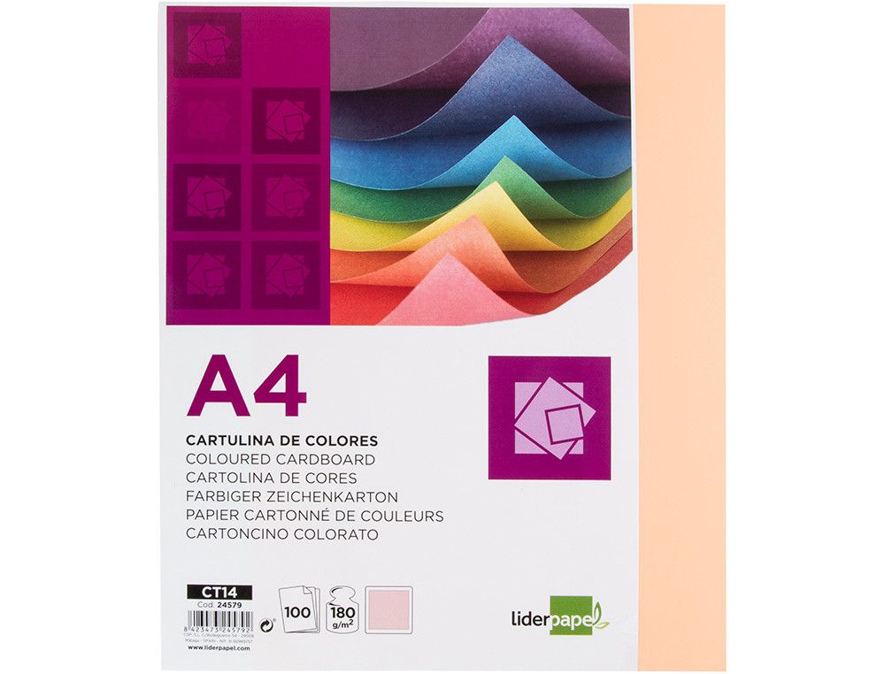 Cartulina Liderpapel A4 180G/M2 Salmon Paquete de 100