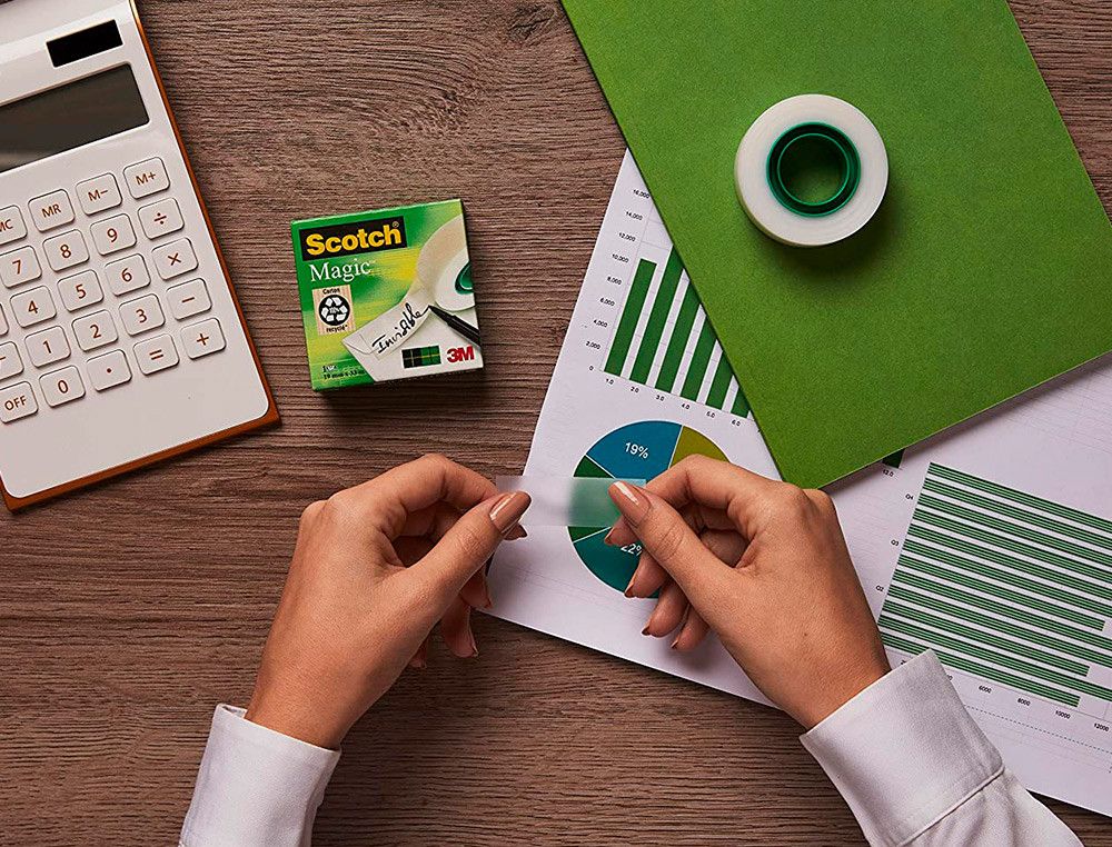 La cinta adhesiva Scotch Magic 810 invisible es tu aliada perfecta para el día a día. Con 8 rollos, se desenrolla y corta sin ruido, dejando tus trabajos impecables. Adhiere de forma invisible, permite escribir y no amarillea, ˇideal para fotocopias! | Referencia Deskidea: 150383