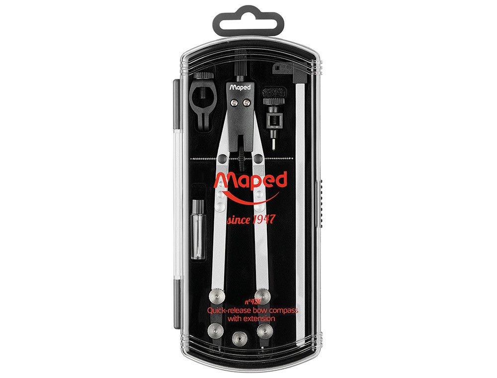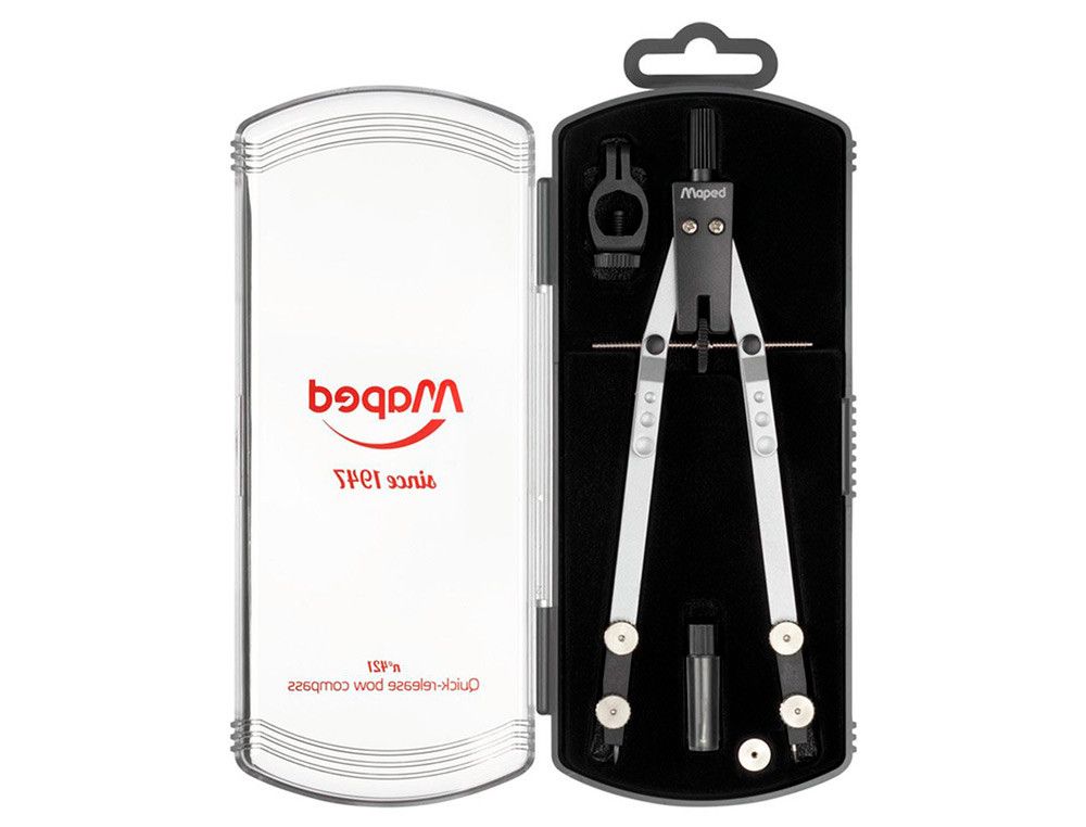 El compás Maped técnico con bigotera es la herramienta perfecta para estudiantes y profesionales. Su sistema de bloqueo de brazos y adaptador universal aseguran precisión en cada trazo. Incluye un protección de punta y mina deslizante para mayor comodidad. | Referencia Deskidea: 162259