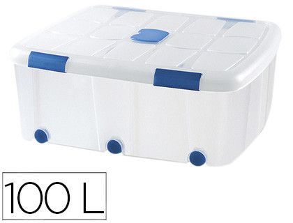 Organiza tu hogar con el contenedor plástico Plasticforte de 100 litros. Ideal para guardar ropa, calzado y sábanas, su tapa con cierres a presión garantiza la conservación de las prendas, mientras que sus ruedas facilitan su movilidad. ˇPracticidad y estilo en uno! | Referencia Deskidea: 155909