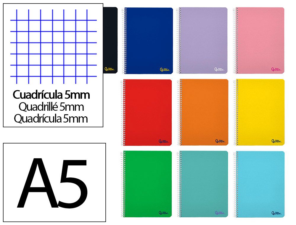 Cuaderno espiral liderpapel A5 micro smart tapa blanda 80h 75gr cuadro 5mm doble margen 6 taladros colores