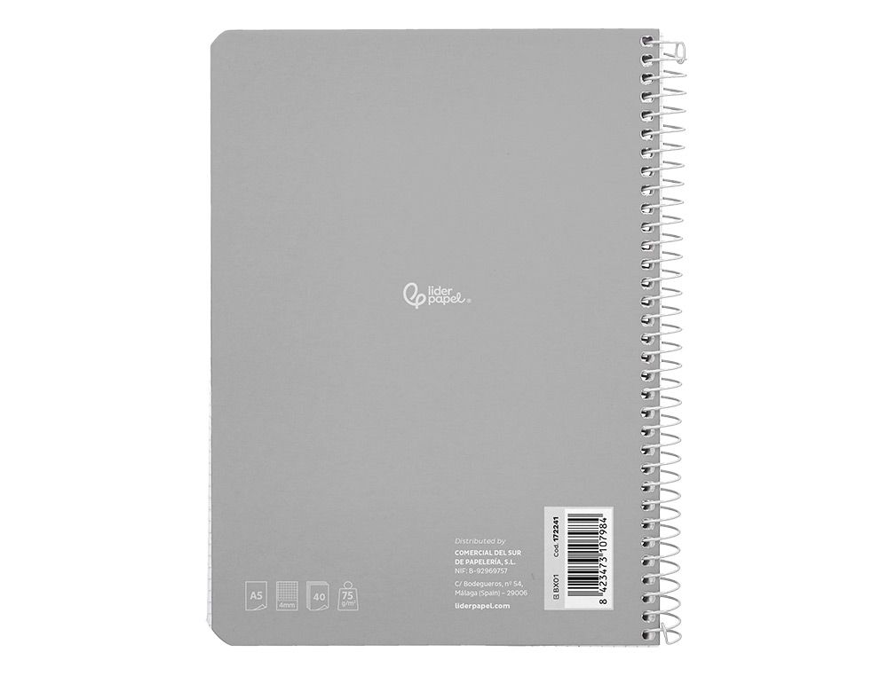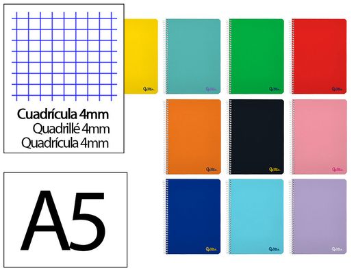 Cuaderno espiral liderpapel A5 smart tapa blanda 40h 75gr cuadro 4mm con margen colores surtidos