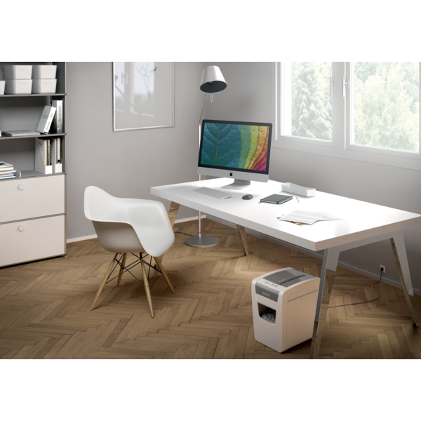 Inteligente, silenciosa y estilizada. Destruye 10 hojas a la vez. Con papelera de 23 l, ofrece 6 min de tiempo de destrucción y mantiene seguridad con corte confeti y nivel DIN P4. Ideal para tu oficina en casa. | Referencia Deskidea: ACC80010100