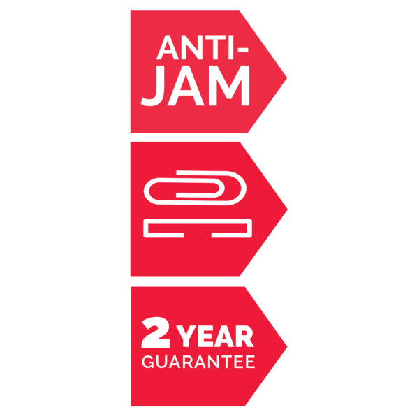 - Tecnología antiatasco: Se detiene automáticamente si se introducen demasiados documentos.
