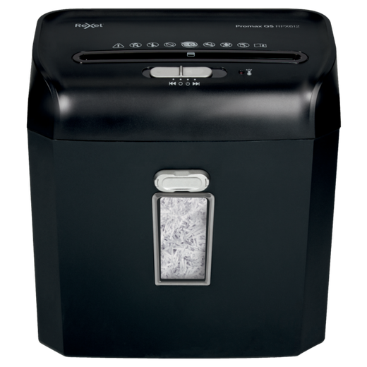 Con su elegante diseño negro, es ideal para cualquier oficina. La ventana transparente te permite controlar el nivel de llenado sin complicaciones. ¡No esperes más y protege tu información valiosa con la Destructora Rexel Promax QS RPX612!
