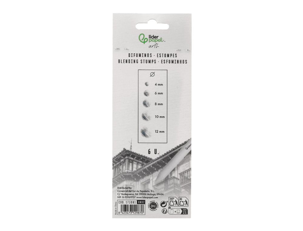 Perfecciona tus técnicas de sombreado y difuminado con los difuminos liderpapel. Se incluyen 6 difuminos de diámetros surtidos, que van desde 116mm hasta 150mm, ideales para una amplia variedad de aplicaciones artísticas. Fabricados con papel comprimido, estos difuminos son duraderos y ofrecen un rendimiento superior. Cada difumino está diseńado para proporcionar un control preciso y suave, permitiéndote mezclar y suavizar líneas y sombras con facilidad. Son perfectos para trabajar con lápices de grafito, carbón, pasteles y otros medios secos, ayudándote a crear transiciones suaves y efectos detallados en tus obras. Este set es esencial para artistas de todos los niveles, desde principiantes hasta profesionales. Ańade los difuminoinos liderpapel a tu kit de herramientas de dibujo y lleva tus habilidades de sombreado al siguiente nivel. | Referencia Deskidea: 173081