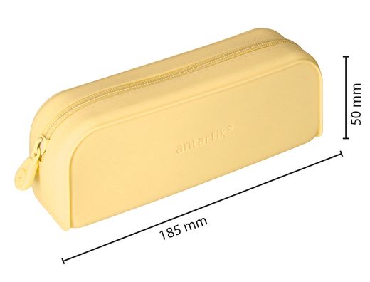 Estuche rectangular fabricado en silicona de alta calidad con acabado tacto suave. Con cremallera flexible y moldeable. Resistente al agua y fácil de limpiar. Funcional y estiloso. Disponible en 8 vibrantes colores, es perfecto para mantenerte organizado. Ideal para el entorno escolar. Rectangular. Medidas: 185 x 75 mm. 1 cremallera. Color amarillo. | Referencia Deskidea: 171430