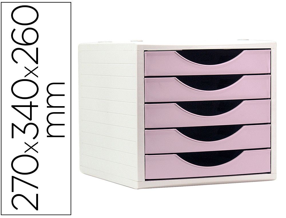 Fichero cajones de sobremesa q-connect 5 cajones color rosa pastel 270x340x260 mm
