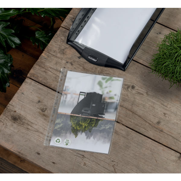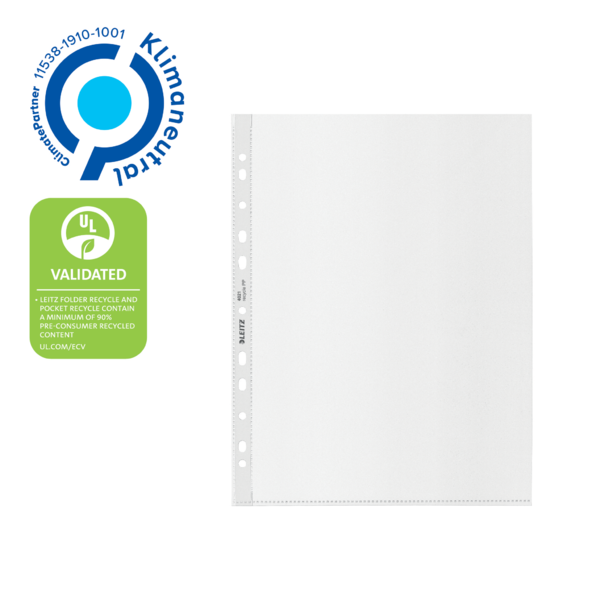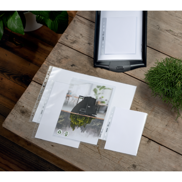 Funda portadocumentos (Bolsa 25). PP "Piel de naranja" con refuerzo. 100 micras. Leitz Recycle. DIN A4 maxi (237x305 mm). 11 taladros
