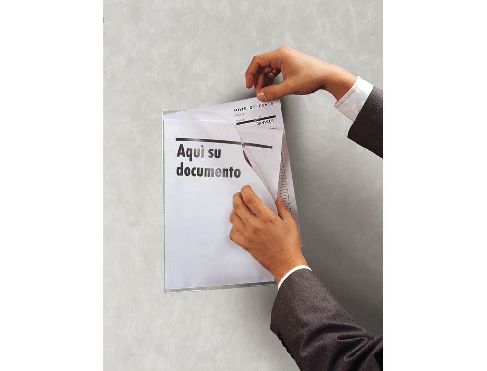 Descubre nuestro pack de 5 fundas para información adhesivas removibles, perfectas para almacenar hasta 10 documentos A4. Con bandas adhesivas y cierre imantado, se adhieren a cualquier superficie lisa sin dejar residuos. ˇOrganiza con estilo y facilidad! | Referencia Deskidea: 76174