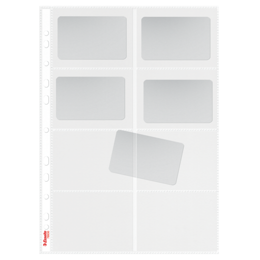 Fundas para tarjetas de visita (Bolsa 10) PP Cristal con refuerzo 105 micras. Multitaladro. 11 taladros