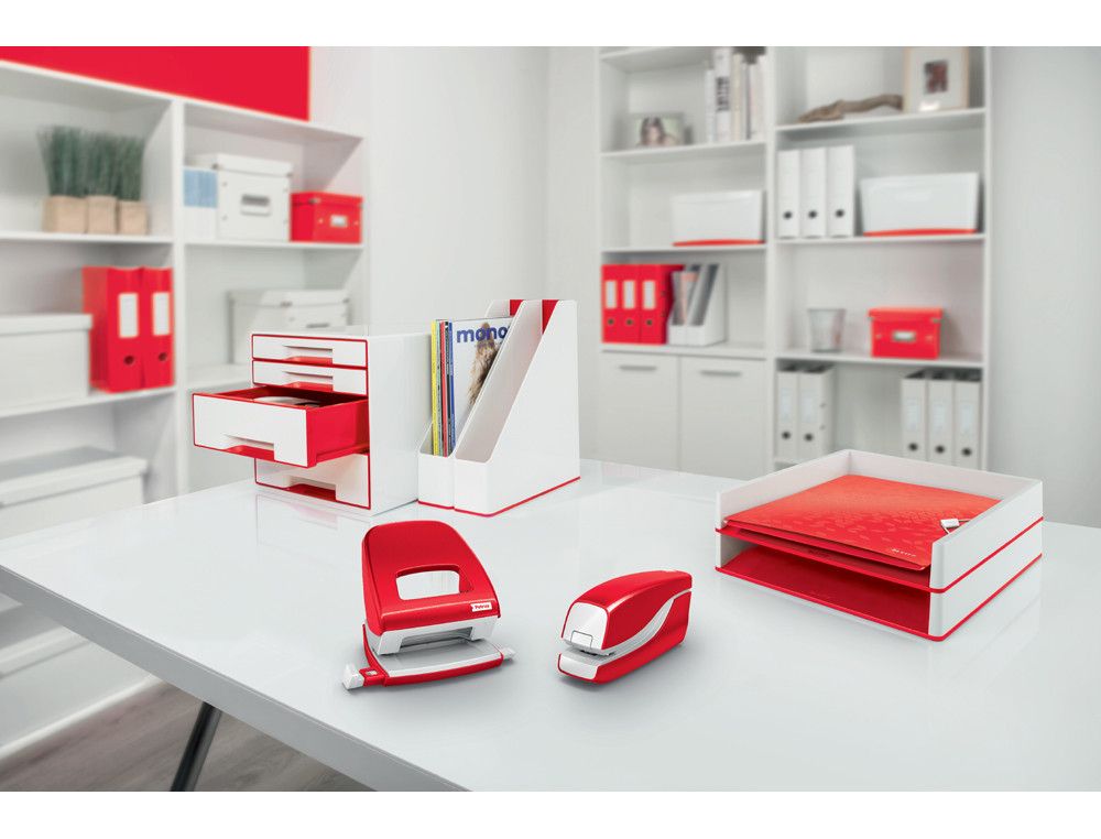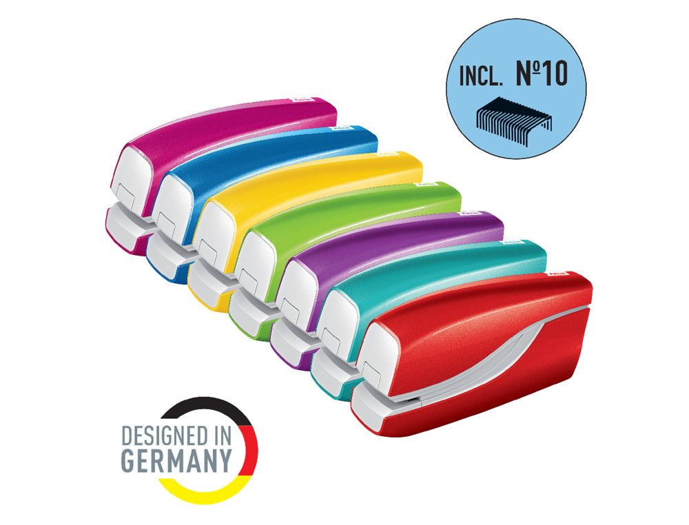 Con la grapadora eléctrica Petrus E-310 en rojo metalizado, grapar hasta 12 hojas se convierte en un placer. Su uso sin contacto garantiza una experiencia higiénica y segura. Alimentada por pilas y con diseńo atractivo, es perfecta para quienes buscan comodidad y estilo en su oficina. | Referencia Deskidea: 171979