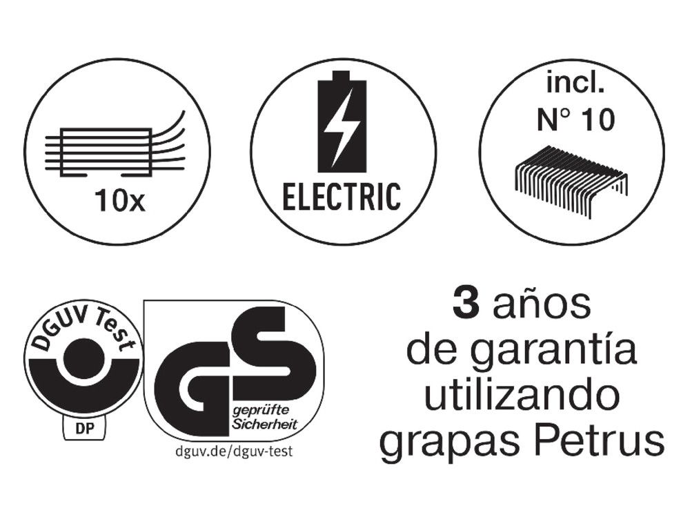 Grapadora petrus electrica e-310 contactless rojo metalizado capacidad 12 hojas usa grapas nº 10