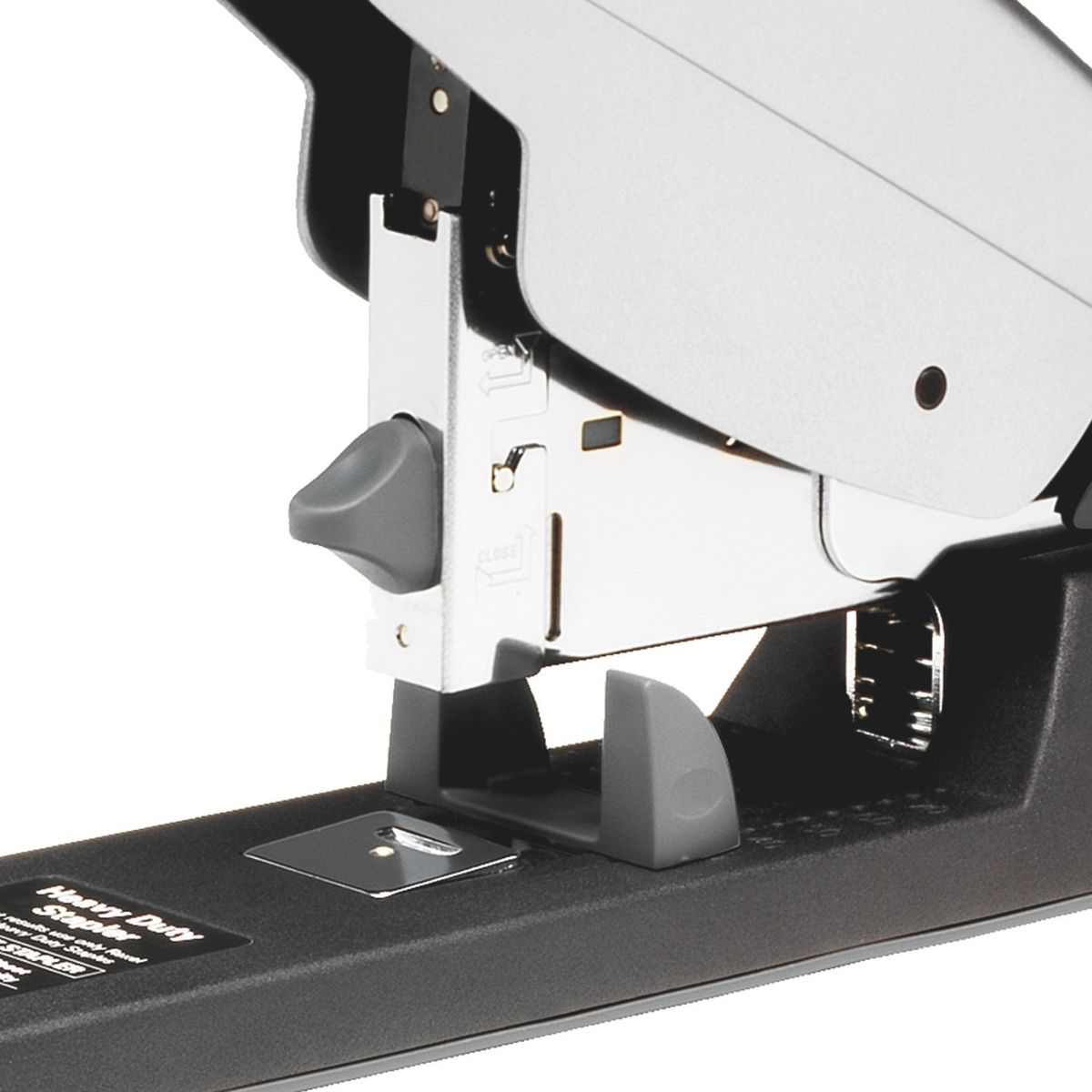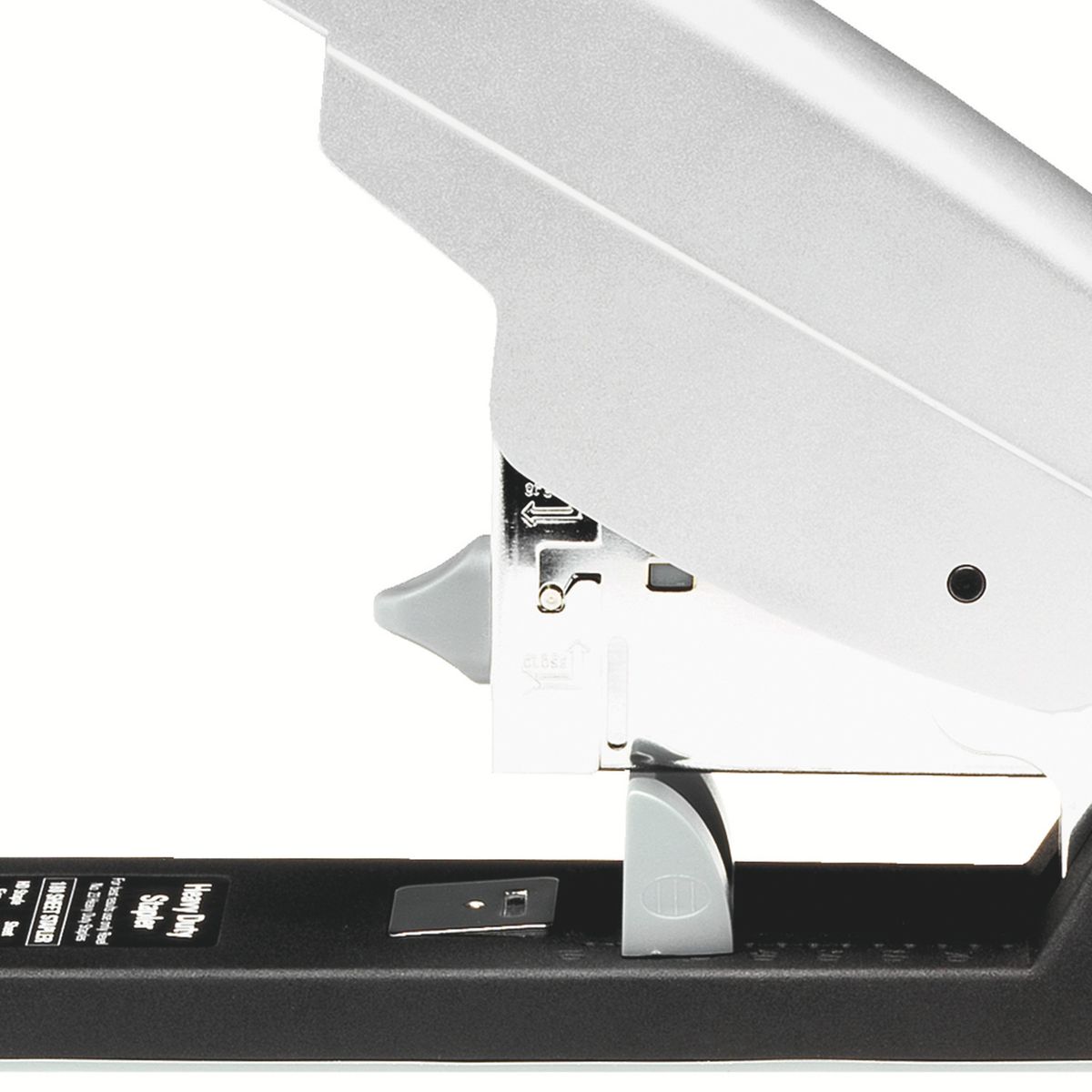 Funciona con grapas del nº 23 (8-24) y tiene un mecanismo con un botón antibloqueo. Además, la carga de grapas se realiza de manera fácil y accesible desde la parte trasera.