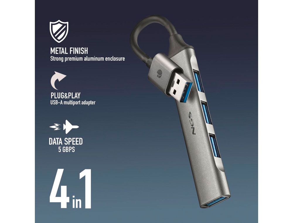 Hub ngs 4 puertos 3 usb 2.0 y 1 usb 3.2 gen 1