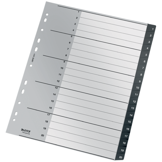 Descubre el Índice Multitaladro Leitz Recycle, la solución perfecta para mantener tus documentos A4 organizados y al alcance de la mano. Este separador está diseñado con: